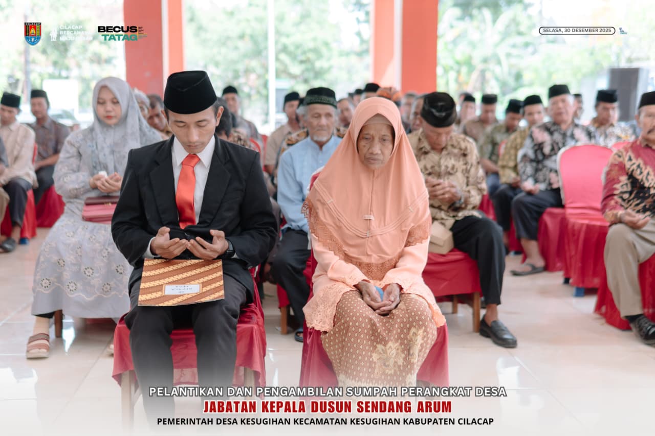 Pemerintah Desa Kesugihan melaksanakan kegiatan Pelantikan Kepala Dusun Sendang Arum pada hari Selasa, 30 Desember 2025, bertempat di Pendopo Balai Desa Kesugihan. Dalam kegiatan tersebut, Bapak Heri Wasono secara resmi dilantik dan diambil sumpah jabatannya sebagai Kepala Dusun Sendang Arum, menggantikan Bapak Warno yang telah memasuki masa purnatugas.