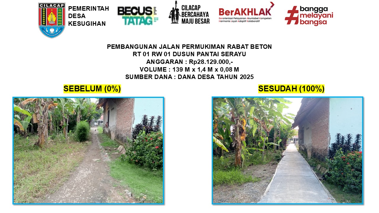 - Pembangunan Jalan Permukiman Rabat Beton RT 01 RW 01 Dusun Pantai Serayu
